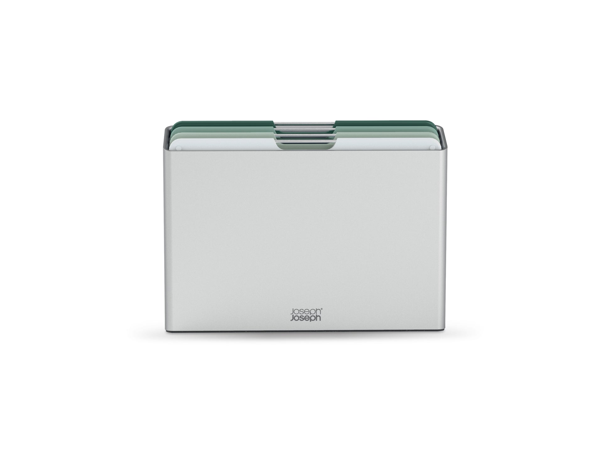 Every great meal starts with a chopping board, so we designed Folio™ to make the food-prep process more efficient and enjoyable. Our chopping board set includes four colour-coded boards with knife-friendly, textured surfaces and non-slip grip feet for safer slicing, chopping and dicing. Stainless-steel bars make it easy to select the board you need from the slim storage case.